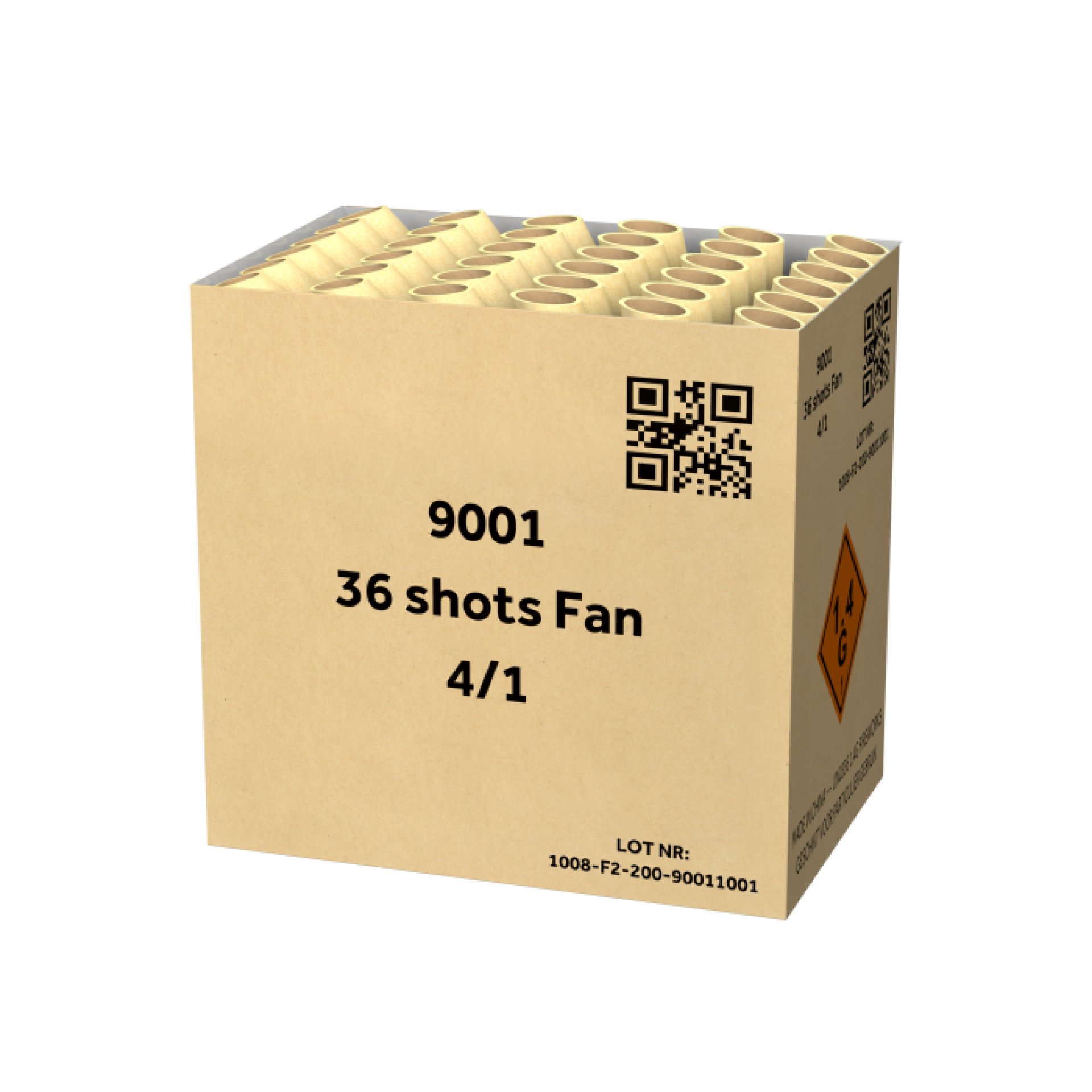 Fantastisch is deze waaiercake absoluut! 36 schoten met gouden mines en gouden palmen met sterren in verschillende kleuren. Maximaal gevuld, 500 gram!