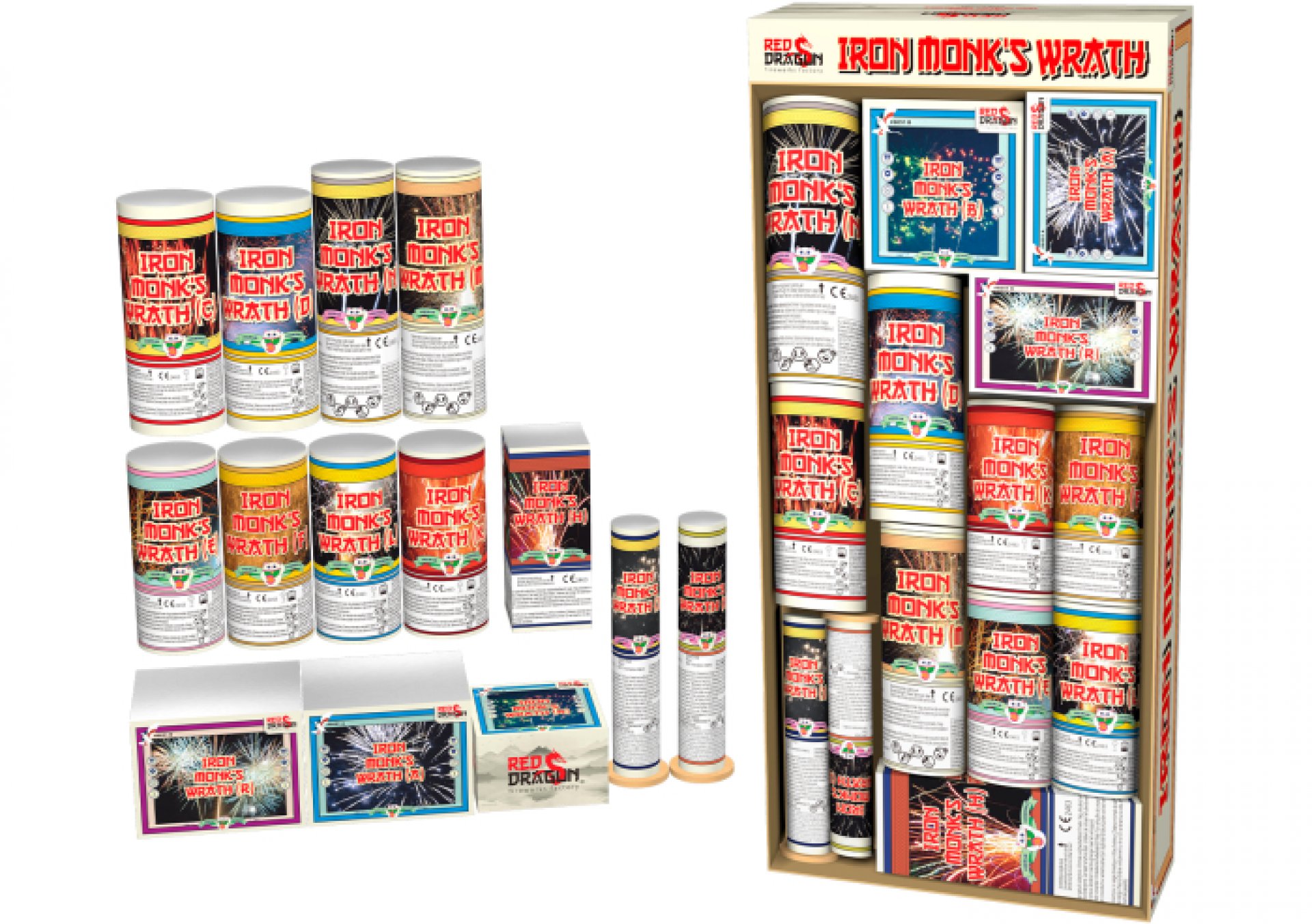 Voor wie groots wil afsluiten met stijl. De grotere broer in de oosterse lijn. Iron Wonk’s Wrath combineert 8 fonteinen, een vierkante fontein, 3 cakes en 2 mines tot één indrukwekkend sierpakket.