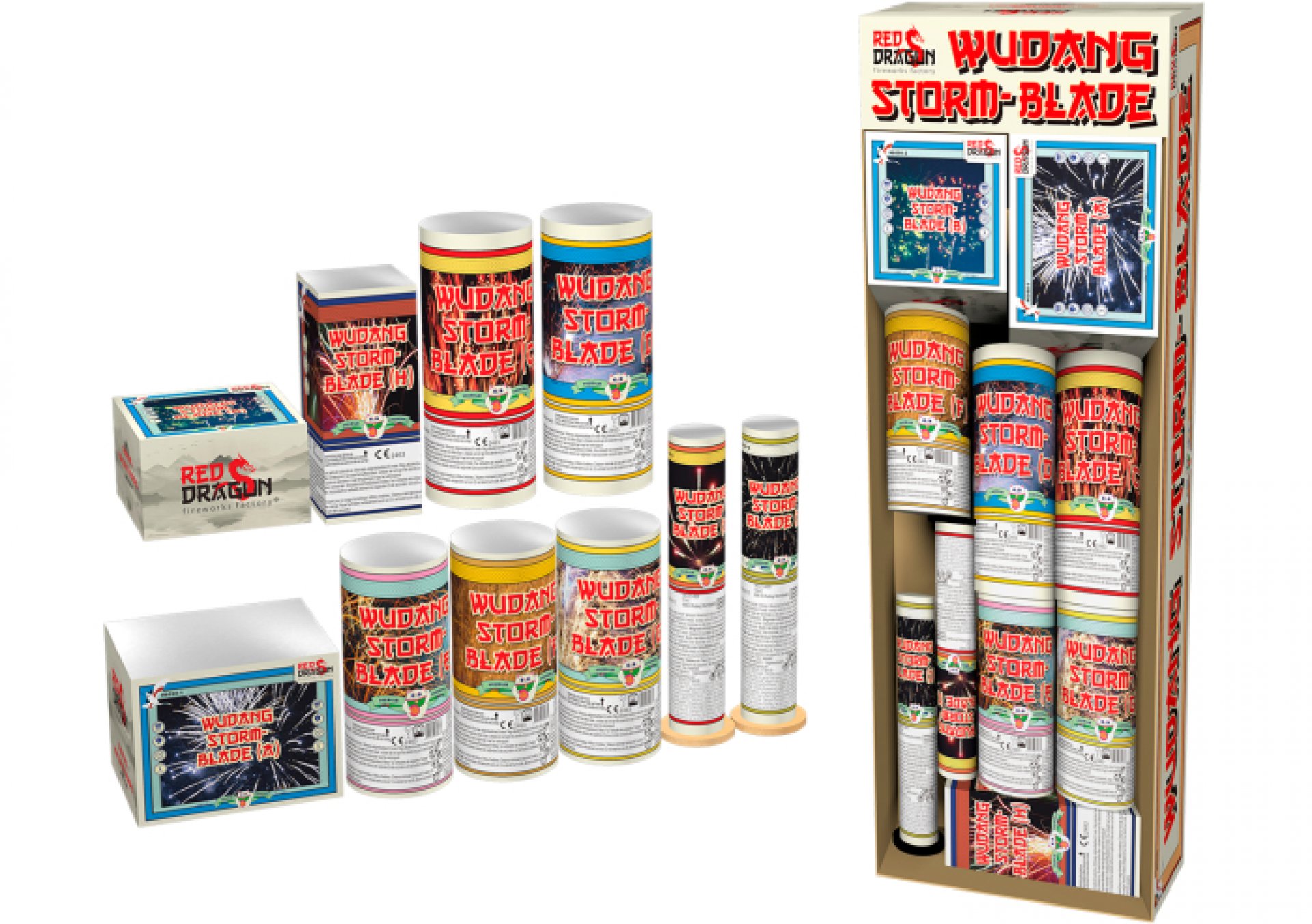 Een Oosterse show vol variatie! De Wudang Stormblade brengt je een complete mix van 5 fonteinen, een vierkante fontein, 2 cakes en 2 mines